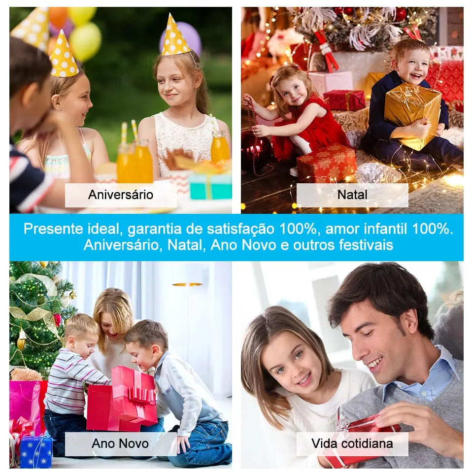 Este brinquedo inteligente possui uma alça ergonômica que facilita o transporte pelas crianças e quatro teclas programadas (para chamadas, envio/recepção automáticos) que tornam a utilização imediata e livre de complicações para os pais. O Walkie Talkie Portátil Infantil não apenas proporciona entretenimento durante o dia, mas também estimula habilidades sociais importantes e o desenvolvimento mental das crianças, destacando suas personalidades únicas.